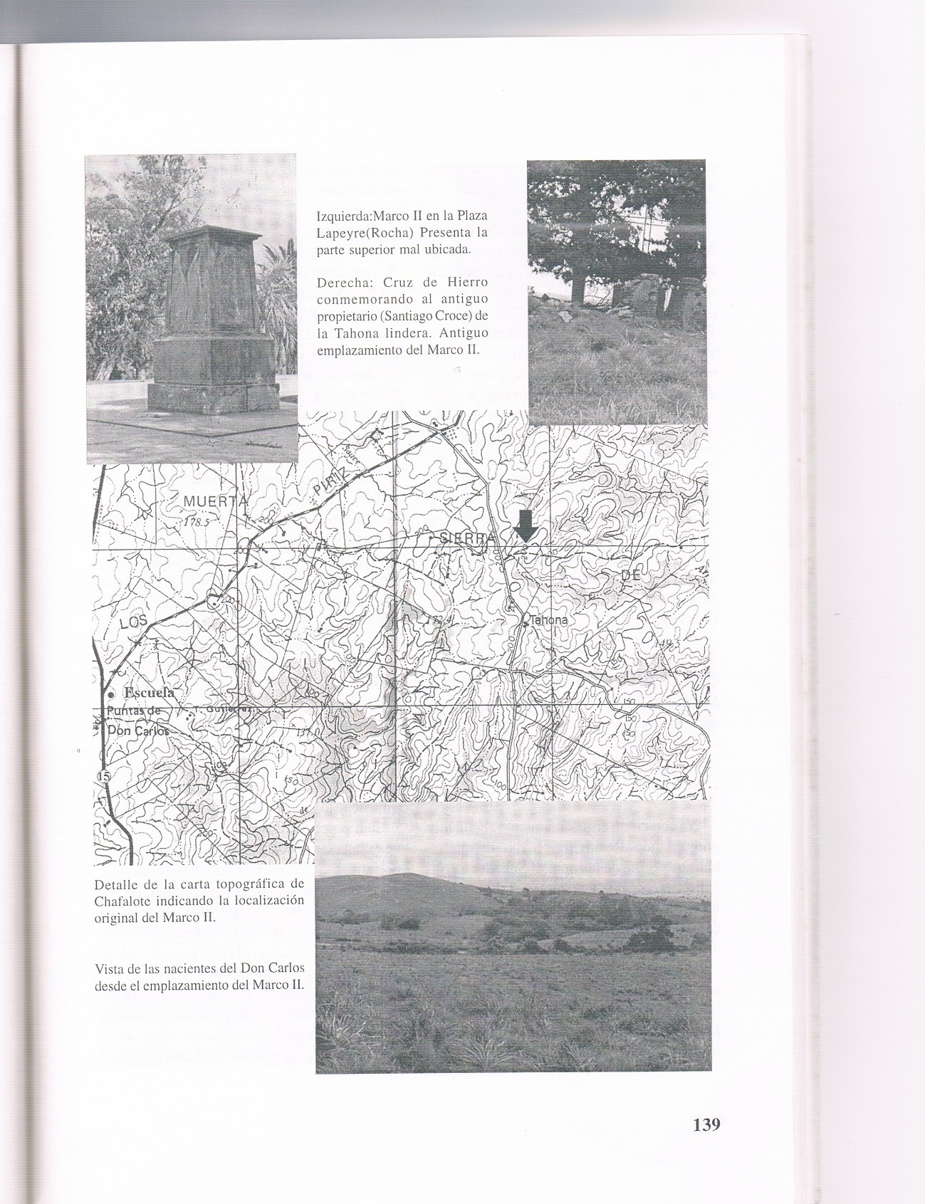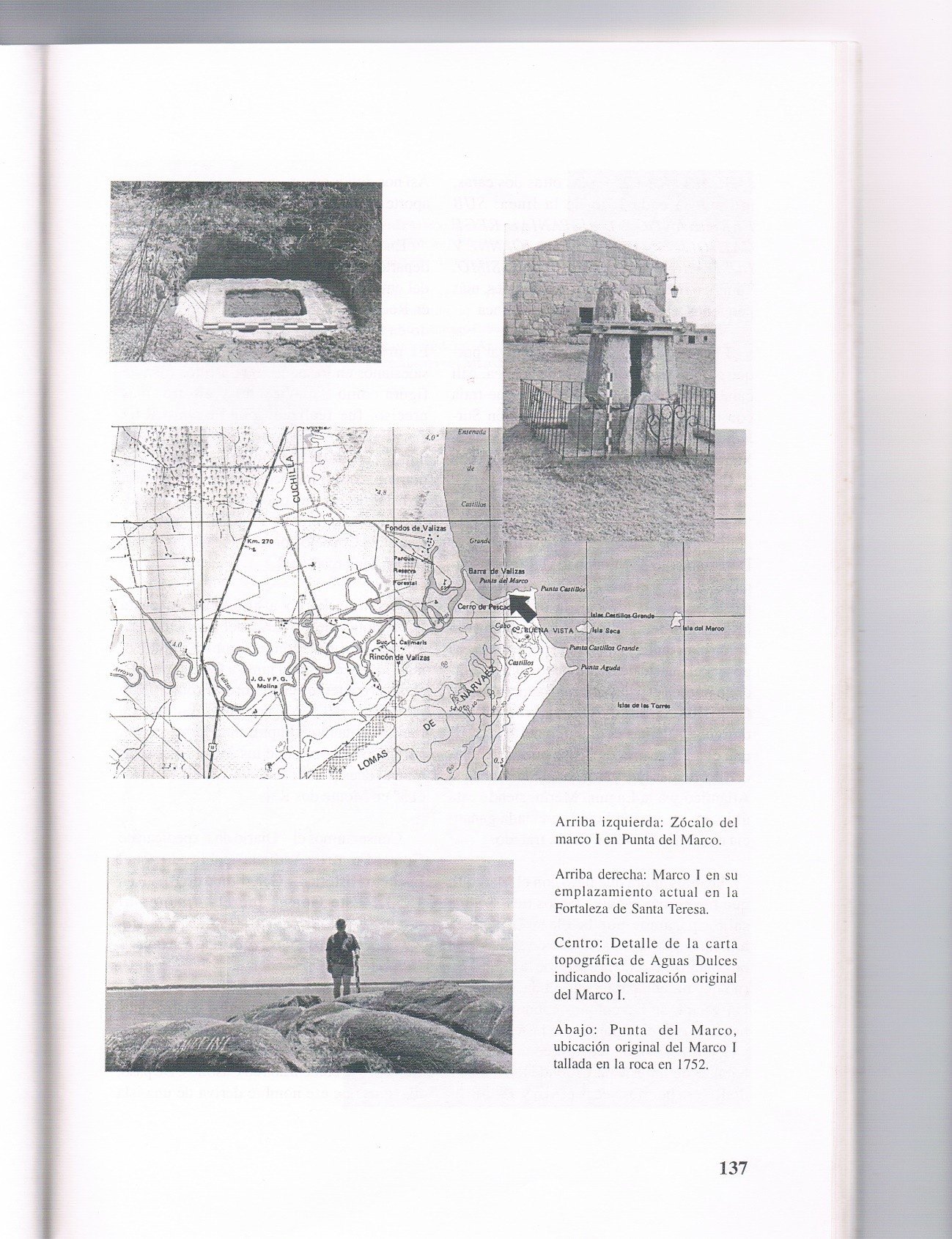Una salida posterior nos llevó a la Plaza de Maldonado donde se levanta la Torre del Vigía, junto a la cual está hoy el Marco III. Fuimos también ese día hasta el arroyo Don Carlos (límite de aquel tratado); a la Punta del Marco donde limpiamos y fotografiamos el zócalo y a la Fza de Sta Teresa donde se halla ahora el Marco I.